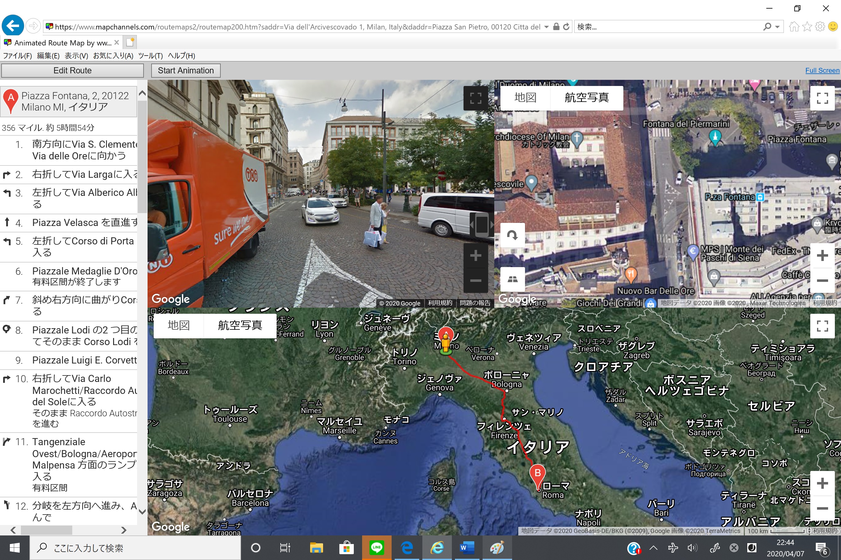 2. Route from Colosseum to Duomo di Milano (Link)